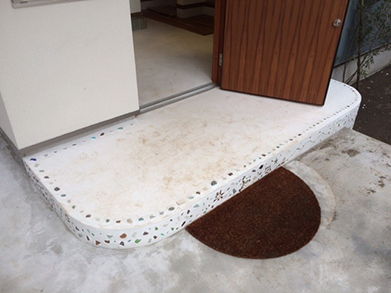 左官屋さんに頼んでタイミングをよく、親子3代でシーグラスで遊んじゃいました。