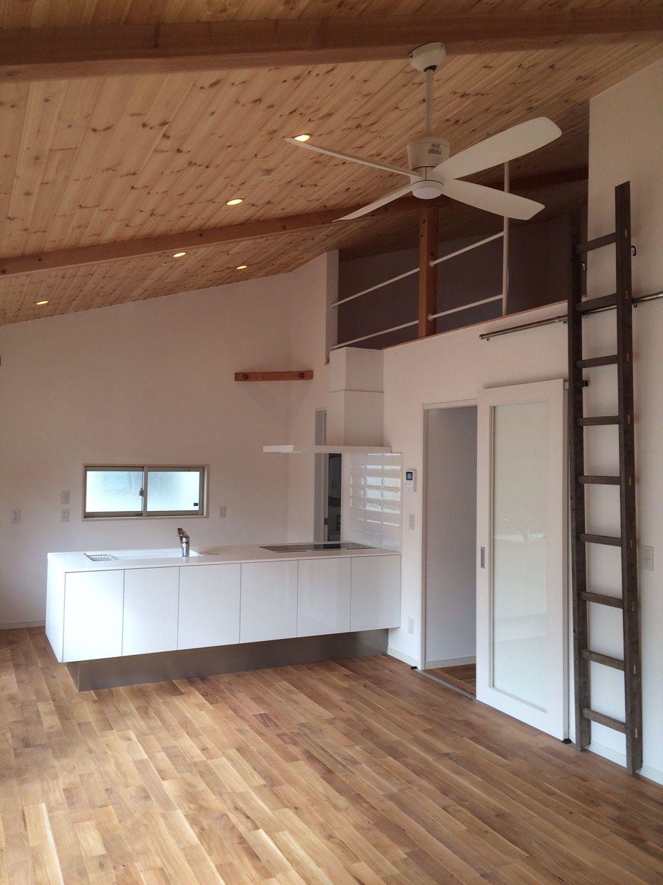 ロフトへの梯子は大工さんが安全祈願に正月に作っている物を譲って頂き、自分で磨いて再利用しました。